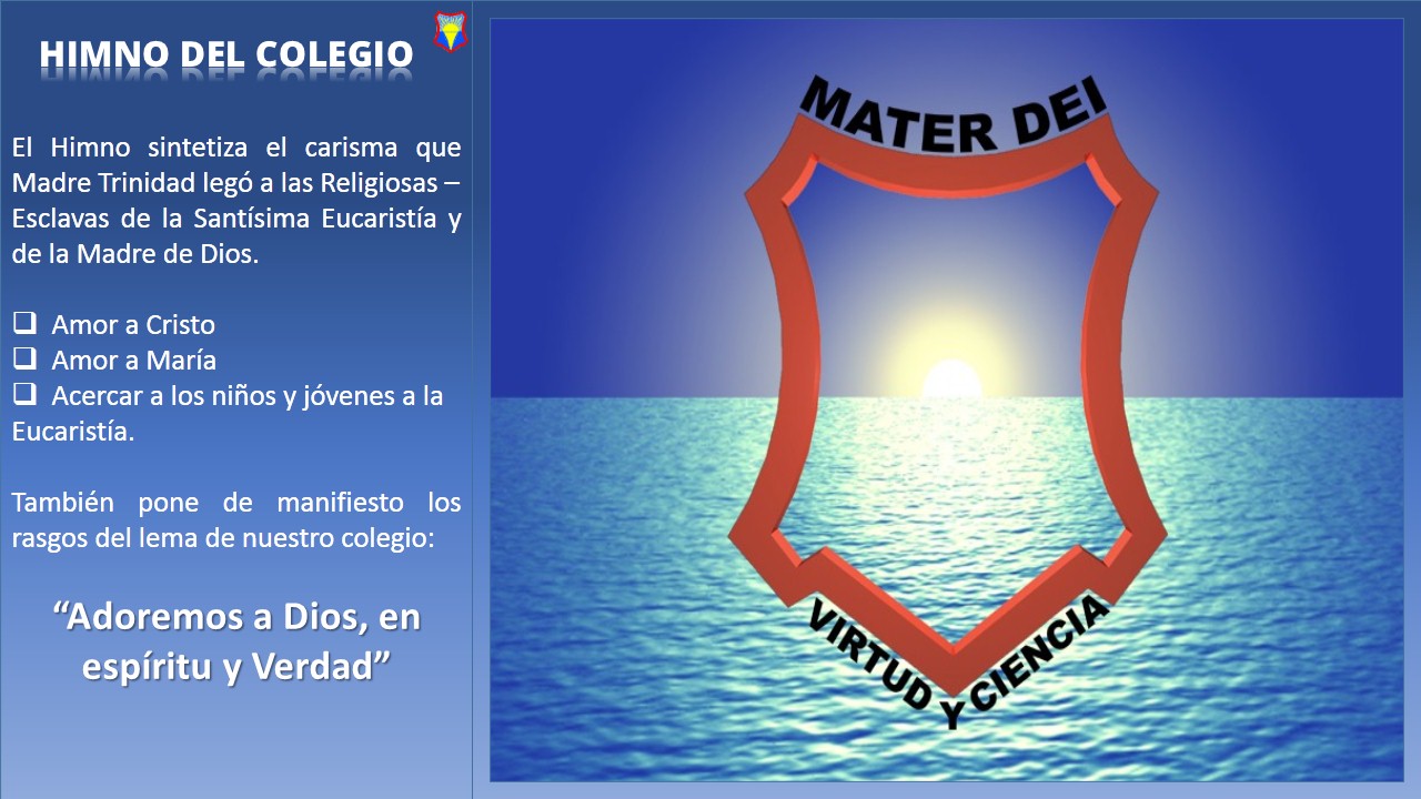 Escudo e Himno de nuestro Colegio MATER DEI Publicador Pastoral 19 Mayo 2021 Visto: 2974 Rating: ( 0 Rating ) Por favor, vote Voto 1 Voto 2 Voto 3 Voto 4 Voto 5 Nuestra identidad Educativa | ESCUDO e HIMNO DEL COLEGIO MATER DEI | IDEARIO Facebook Twitter Anterior Siguiente