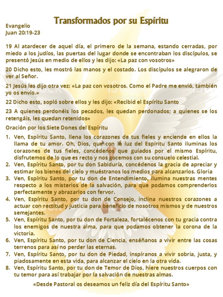 Transformados por su ESPÍRITU | Evangelio Juan 20:19-23 Publicador Pastoral 21 Mayo 2021 Visto: 1650 Rating: ( 0 Rating ) Por favor, vote Voto 1 Voto 2 Voto 3 Voto 4 Voto 5 Desde Pastoral os deseamos «Feliz Día del Espíritu Santo» Ilumíname Señor con tu Espíritu (Cántico...) https://youtu.be/YJ83eNj-k7A Sor Paula Moreno Dpto. PASTORAL Facebook Twitter Anterior Siguiente